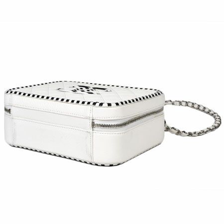 3. シャネル CHANEL チェーンショルダー付 バニティバッグ マトラッセ ホワイト カーフスキン キャビアスキン 2019年クルーズコレクション A93343【中古】