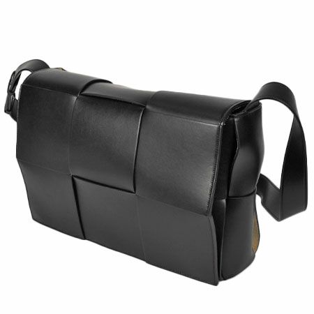 送料無料 ボッテガヴェネタ BOTTEGA VENETA マキシ イントレチャート クロスボディ カセットバッグ ショルダーバッグ メッセンジャーバッグ ブラック レザー 黒【中古】