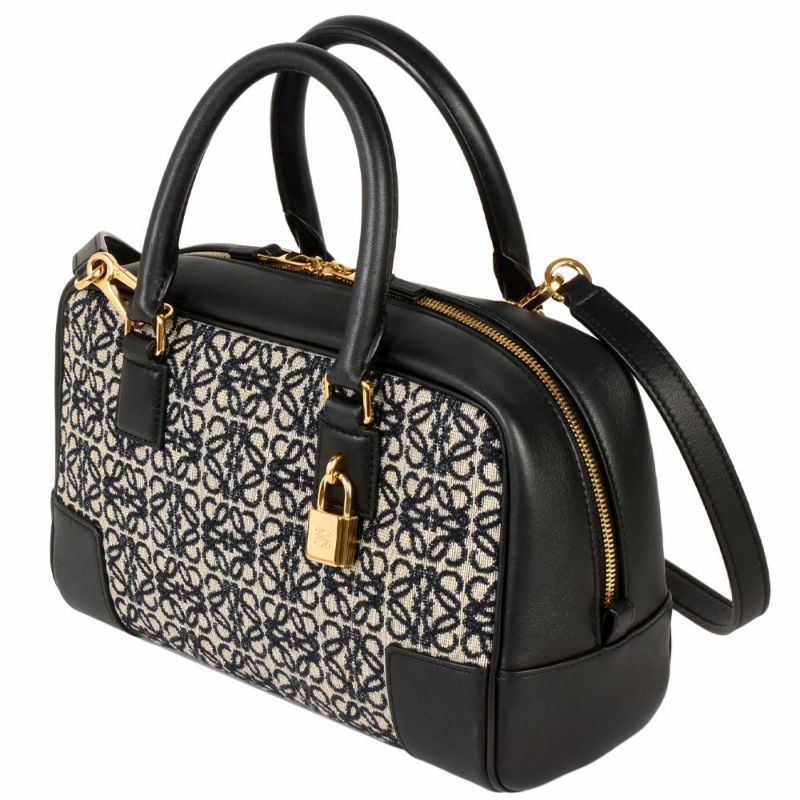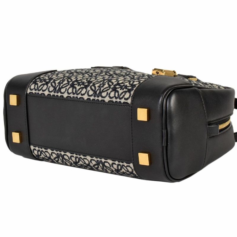 5. ロエベ LOEWE アマソナ23 アナグラムジャカード カーフ ハンドバッグ ショルダーバック 2way レザー ネイビー ブラック【中古】