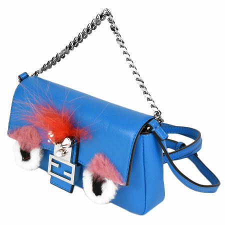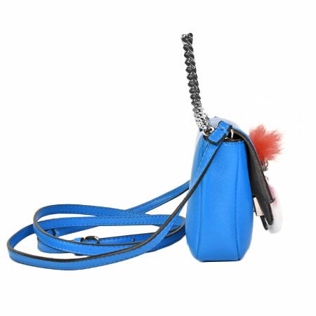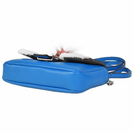 送料無料 フェンディ FENDI モンスター マイクロバケット ショルダーバッグ 2WAY ストラップ付 ポーチ レザー ブルー 8M0354【中古】