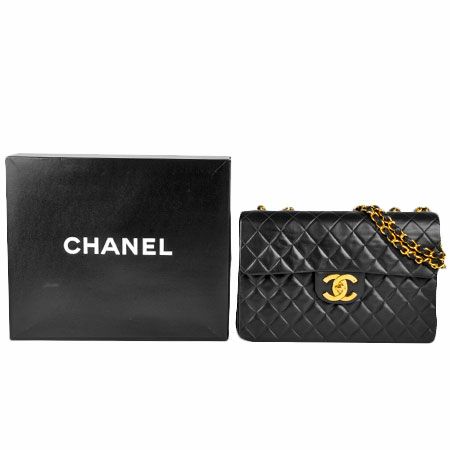 送料無料 シャネル CHANEL マトラッセ34 デカマトラッセ ダブルチェーンショルダーバッグ ココマーク ブラック ゴールド金具 ラムスキン A01094【中古】