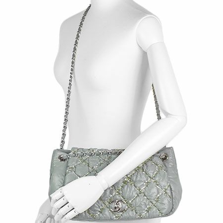 送料無料 シャネル CHANEL Wチェーンショルダーバッグ マトラッセ パリビザンス グレー カーキ ナイロン シルバー金具 A50630【中古】