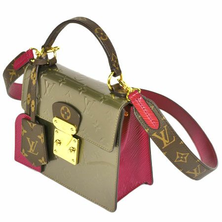 3. ルイヴィトン LOUIS VUITTON スプリング・ストリート PM ショルダーストラップ付 2WAY ハンドバッグ ヴェルニ グレー M90502【中古】