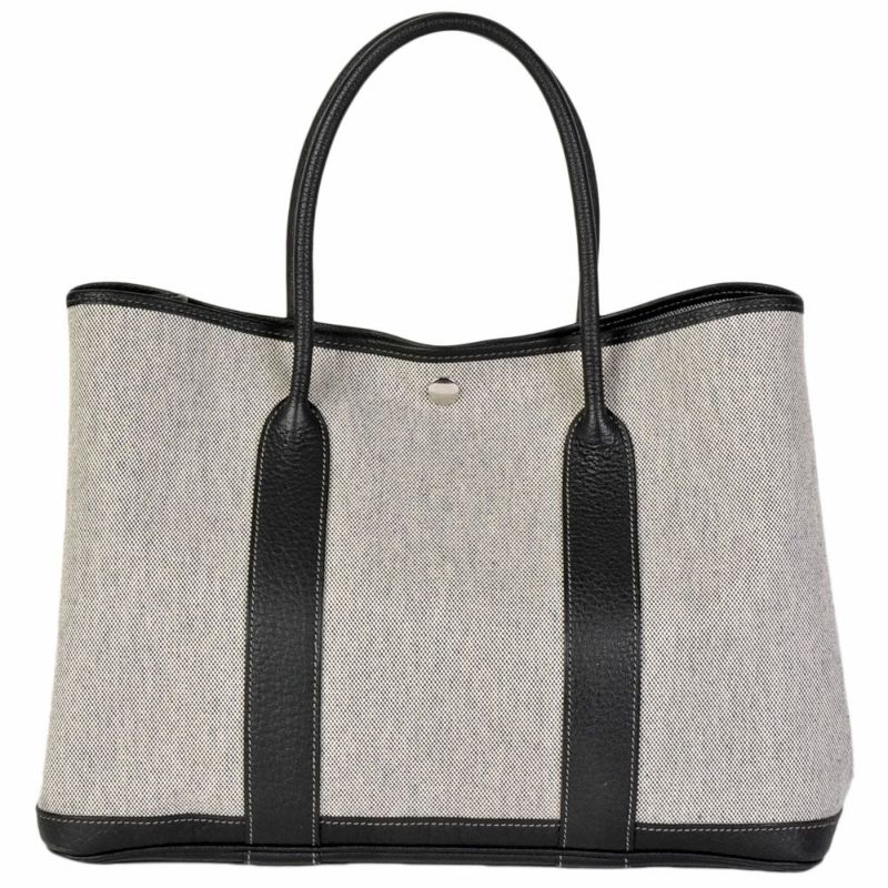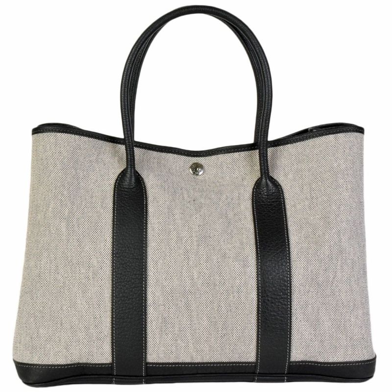 4. エルメス HERMES ハンドバッグ ガーデンパーティ36 PM □Q刻印(2013年製造) ナチュラル トワルアッシュ ベージュ ブラック【中古】