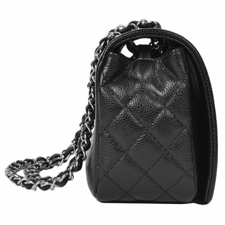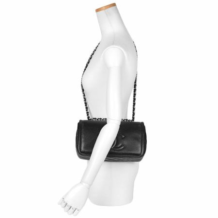 3. シャネル CHANEL ココマーク Wチェーン 2WAY ショルダーバッグ キャビアスキン ブラック シルバー金具 【中古】