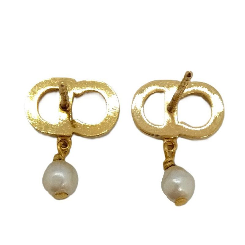 3. ディオール Dior トライバル ピアス メタル レジンパール E1732TRICY_D301 ゴールド ラインストーン CDロゴ【中古】