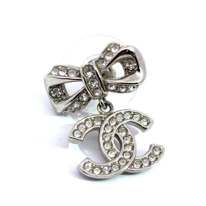 3. シャネル CHANEL ココマーク リボン ピアス メタル B18P シルバー レディース【中古】