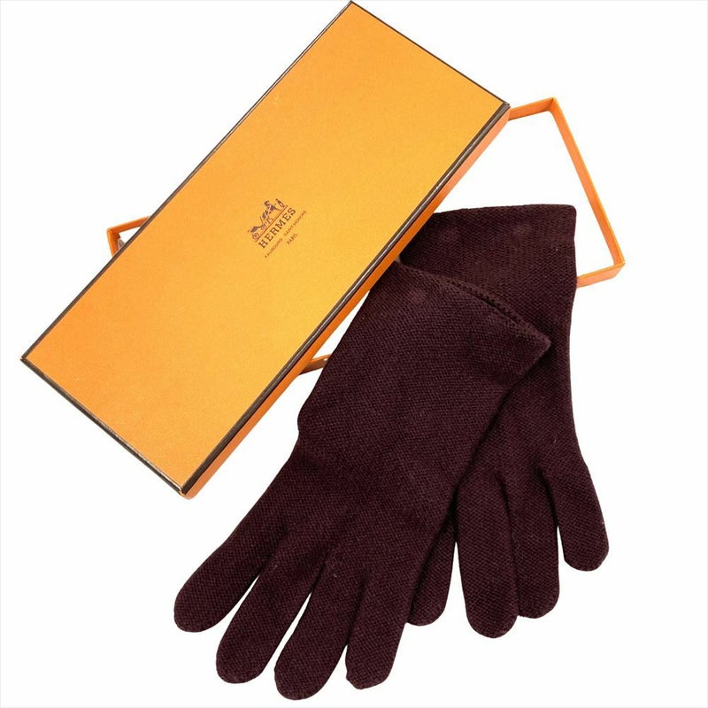 エルメス HERMES 手袋 グローブ カシミヤ ボルドー M レディース【中古】