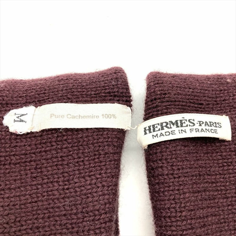 4. エルメス HERMES 手袋 グローブ カシミヤ ボルドー M レディース【中古】