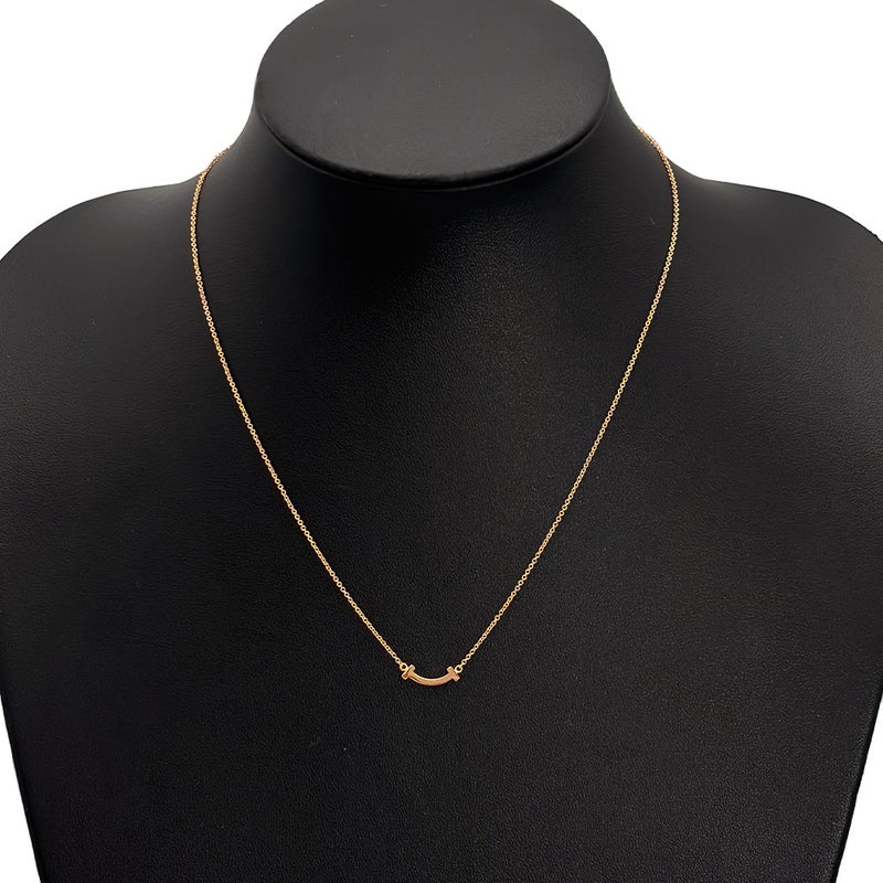 3. ティファニー Tiffany&Co. Tスマイル ミニ ネックレス K18PG 2.3g ピンクゴールド レディース【中古】