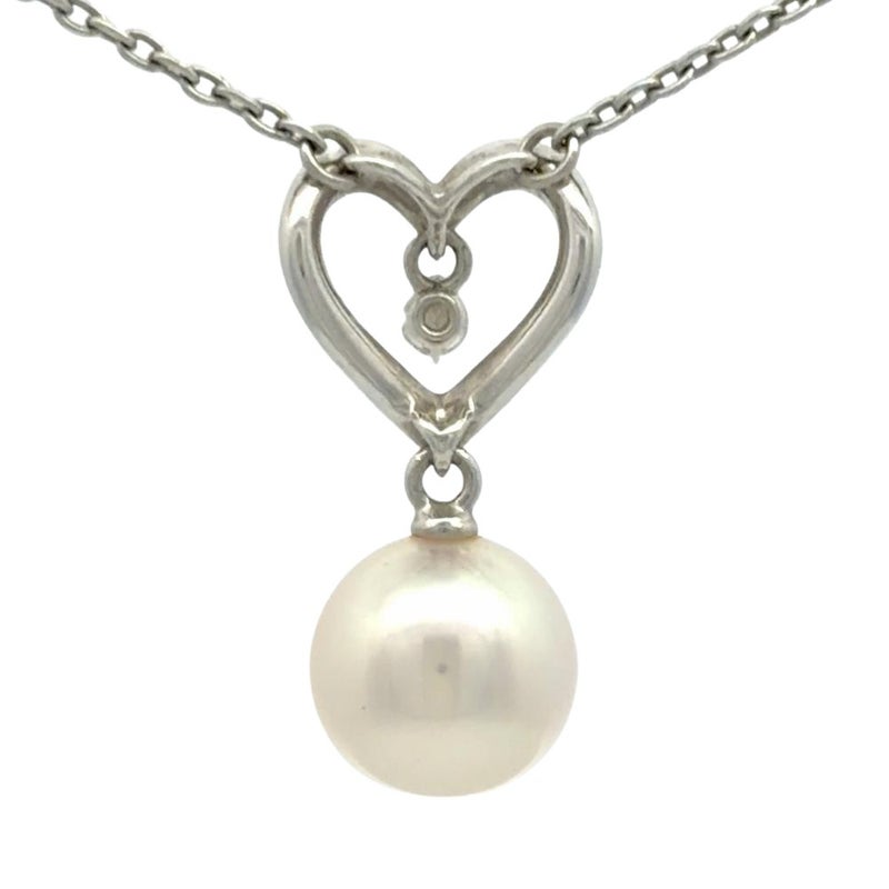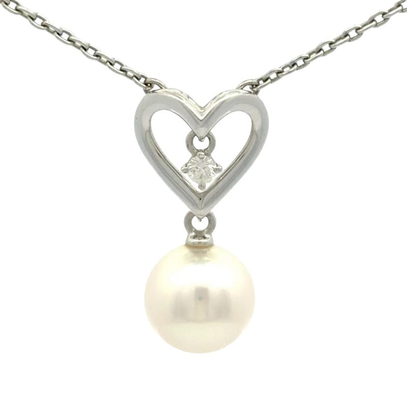 ミキモト MIKIMOTO 1P パール ハート ネックレス ダイヤモンド K18WG 3.0g 真珠 約7.5mm ホワイトゴールド レディース【中古】