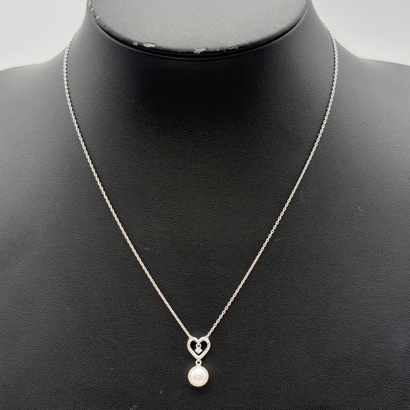 3. ミキモト MIKIMOTO 1P パール ハート ネックレス ダイヤモンド K18WG 3.0g 真珠 約7.5mm ホワイトゴールド レディース【中古】