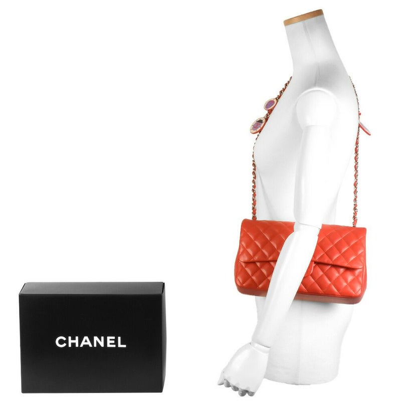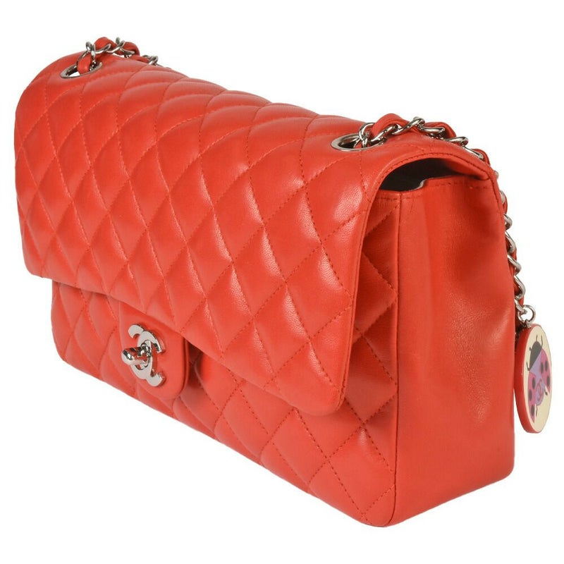 3. シャネル CHANEL マトラッセ25 Wチェーン ショルダーバッグ ラムスキン レッド シルバー金具 ココマーク てんとう虫 8番台(2003年頃製造)【中古】