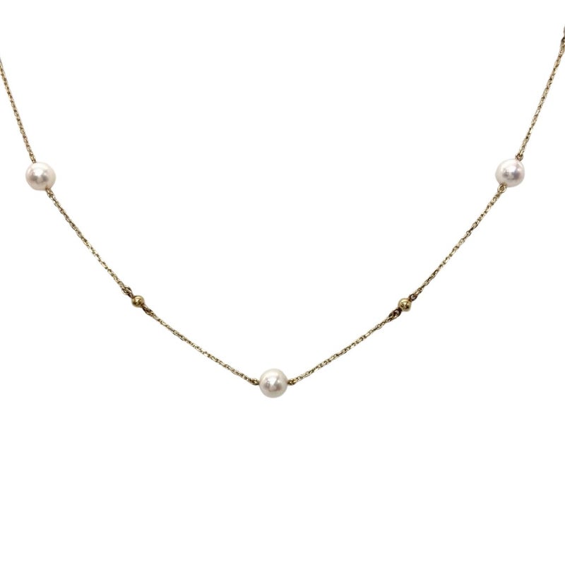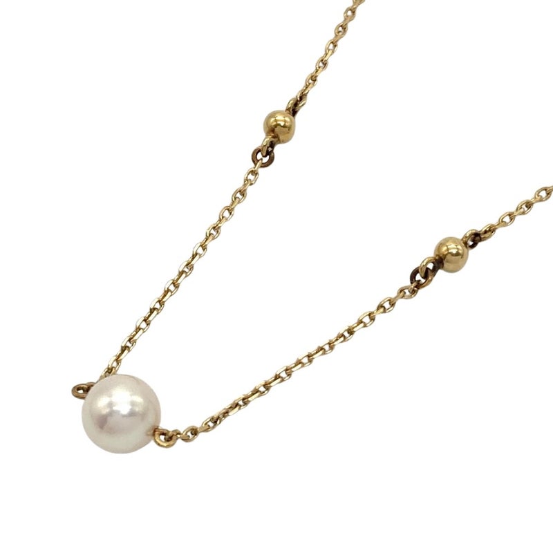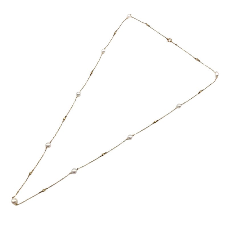 - ミキモト MIKIMOTO パール 9P ステーション ロング ネックレス K14YG 7.0g 真珠 約6.0-6.4mm イエローゴールド レディース【中古】