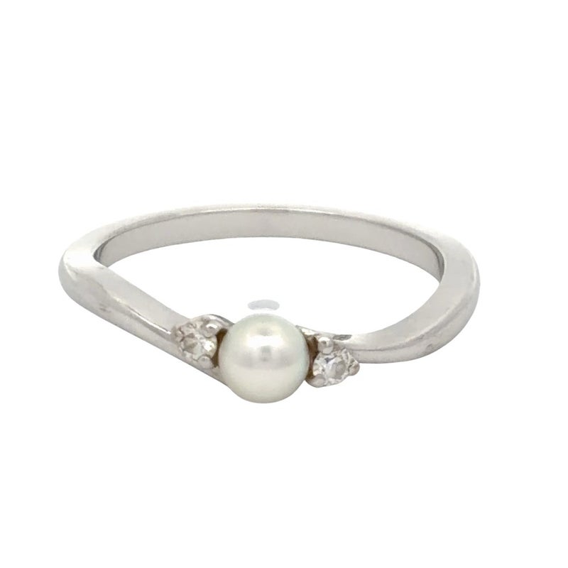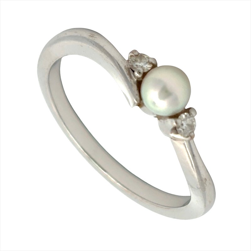 5. ミキモト MIKIMOTO ベビーパール リング 指輪 ダイヤモンド 約11号 K18WG 2.6g パール 4mm ホワイトゴールド レディース【中古】