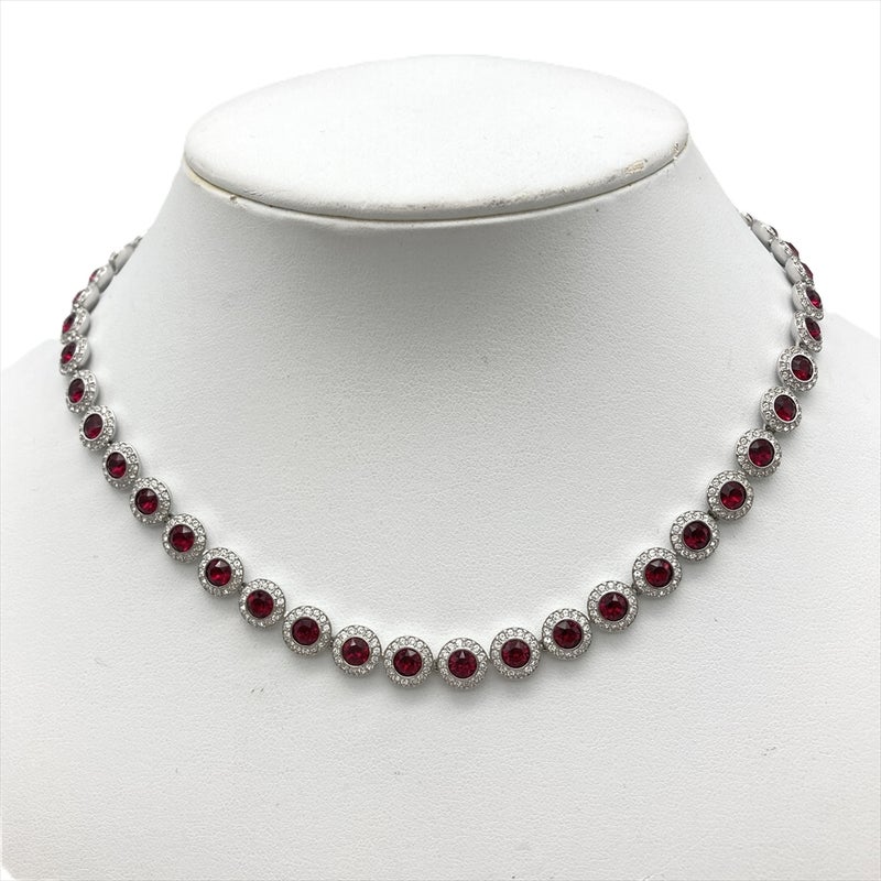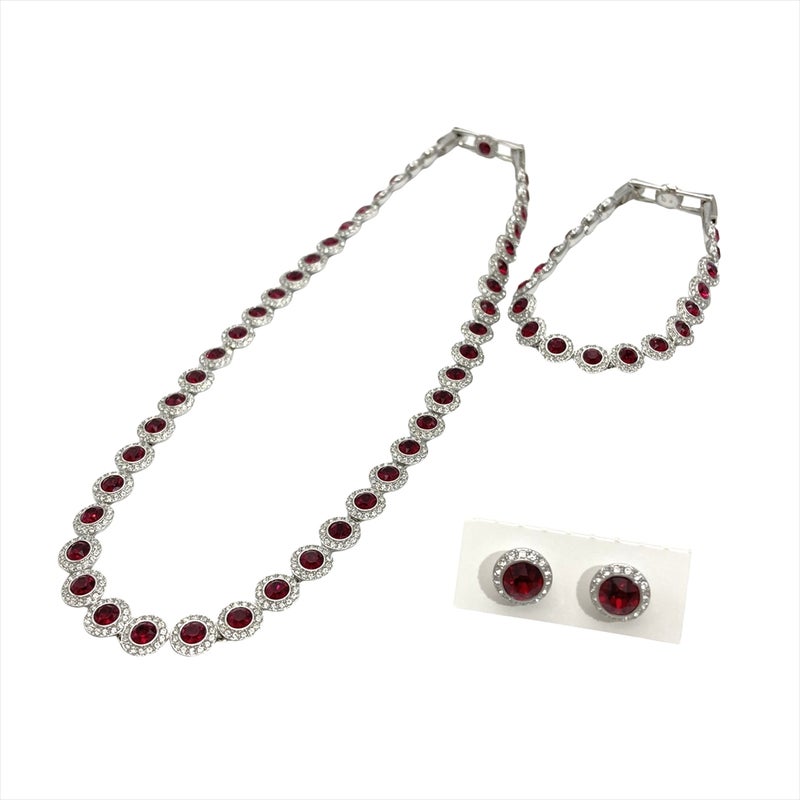 - スワロフスキー SWAROVSKI Angelic All Around セット ネックレス メタル ワインレッド シルバー金具 ピアス ブレスレット【中古】