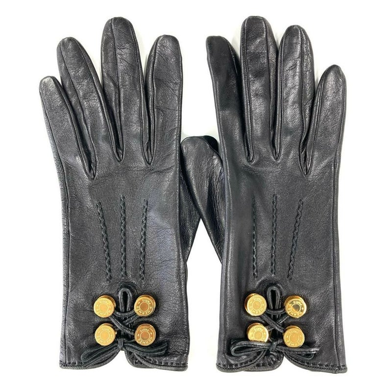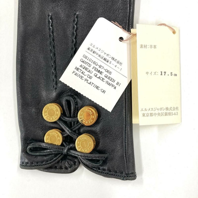 5. エルメス HERMES セリエ 手袋 グローブ ラムスキン ブラック ゴールド金具 レディース【中古】