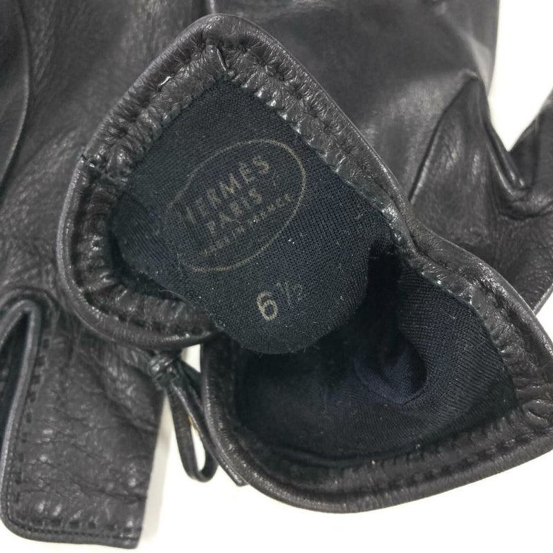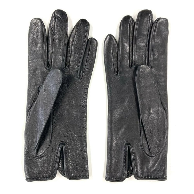 3. エルメス HERMES セリエ 手袋 グローブ ラムスキン ブラック ゴールド金具 レディース【中古】