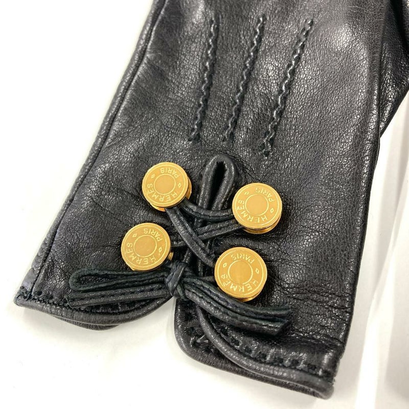 4. エルメス HERMES セリエ 手袋 グローブ ラムスキン ブラック ゴールド金具 レディース【中古】