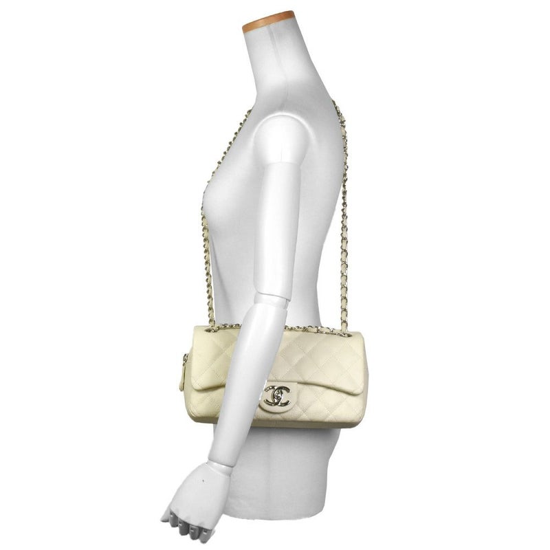 3. シャネル CHANEL マトラッセ ショルダーバッグ キャビアスキン オフホワイト シルバー金具 8桁 20番台(2014年製造)【中古】