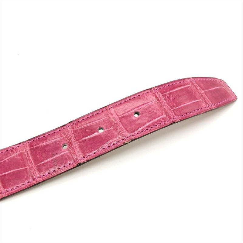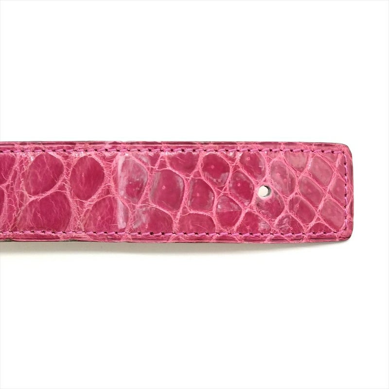 5. エルメス HERMES H ベルト ポロサス 95cm □I刻印 ピンク シルバー金具 80 コンスタンス クロコダイル レディース【中古】