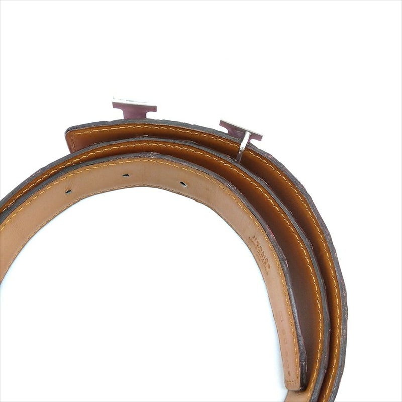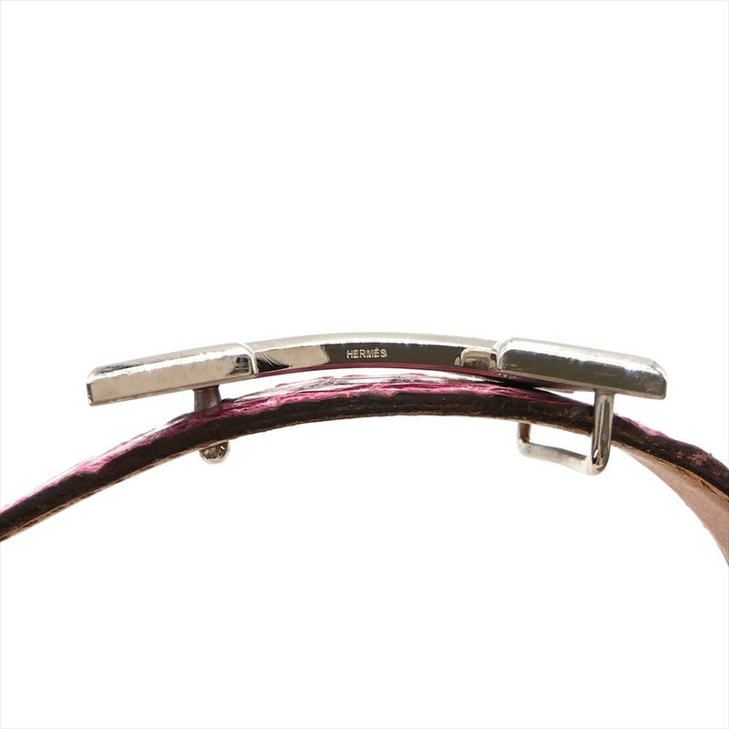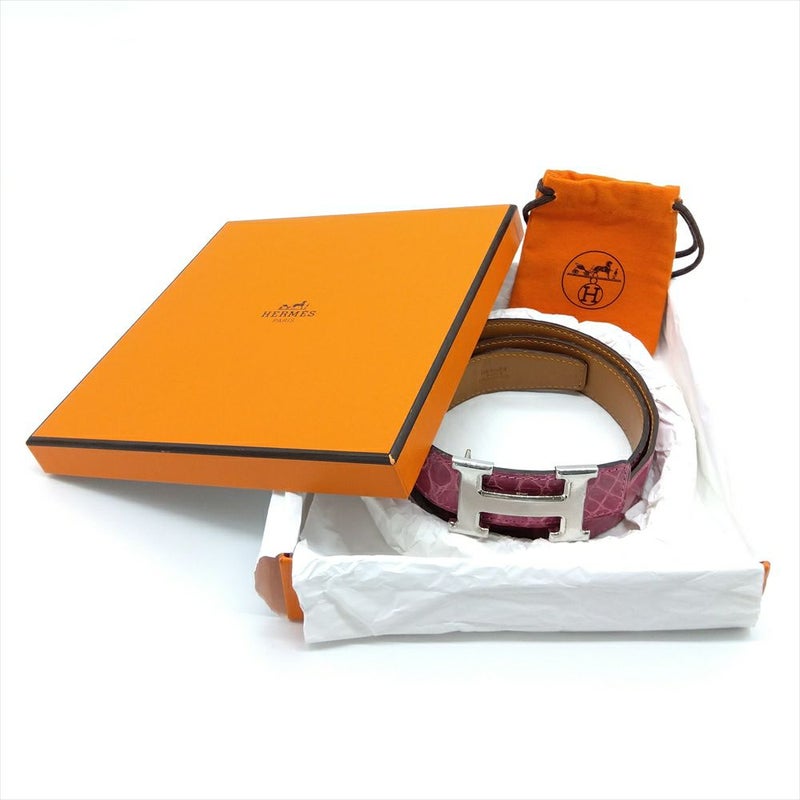 3. エルメス HERMES H ベルト ポロサス 95cm □I刻印 ピンク シルバー金具 80 コンスタンス クロコダイル レディース【中古】