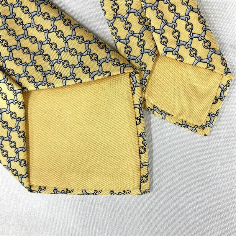 4. エルメス HERMES チェーン モチーフ ネクタイ シルク 165cm イエロー 総柄 メンズ【中古】
