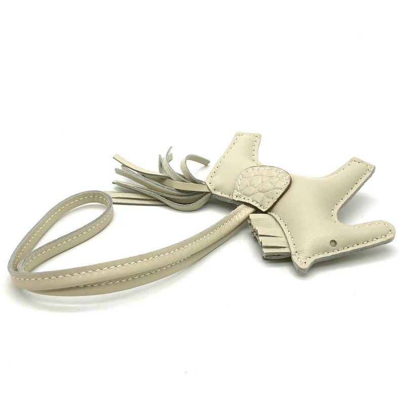 4. エルメス HERMES ロデオ PM チャーム レザー U刻印 クレ ホワイト アニョーミロ アリゲーターマット【中古】