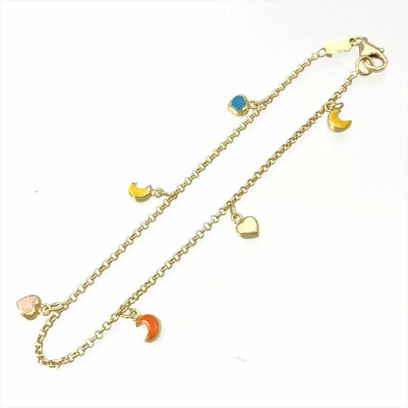 4. ポンテヴェキオ Ponte Vecchio ハート ムーン ブレスレット K18YG 2.9g マルチカラー イエローゴールド 月 レディース【中古】