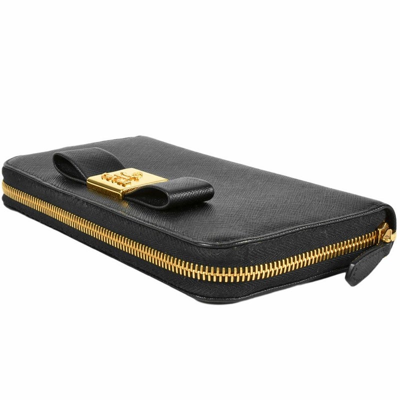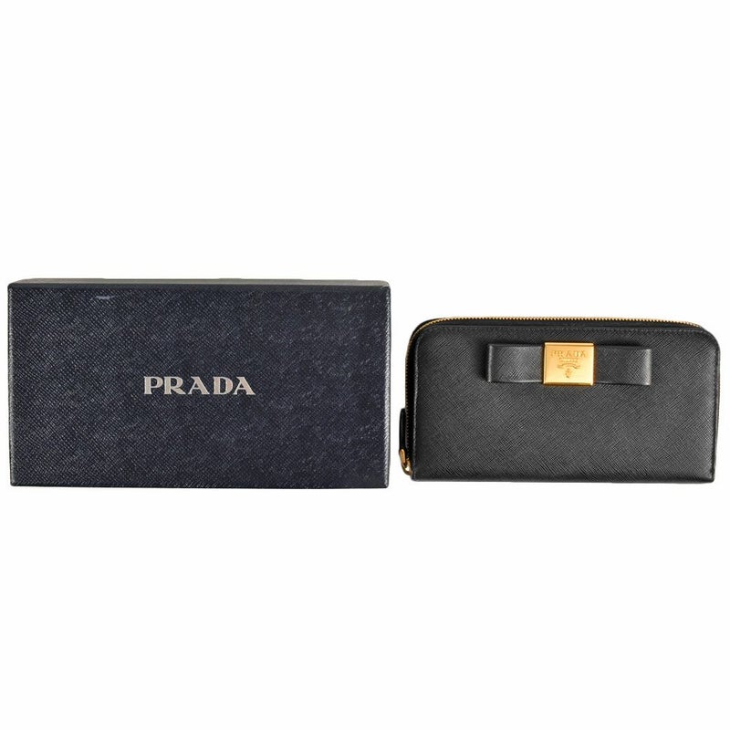 送料無料 プラダ PRADA リボン ラウンドファスナー サフィアーノ 1M0506 ブラック レディース【中古】