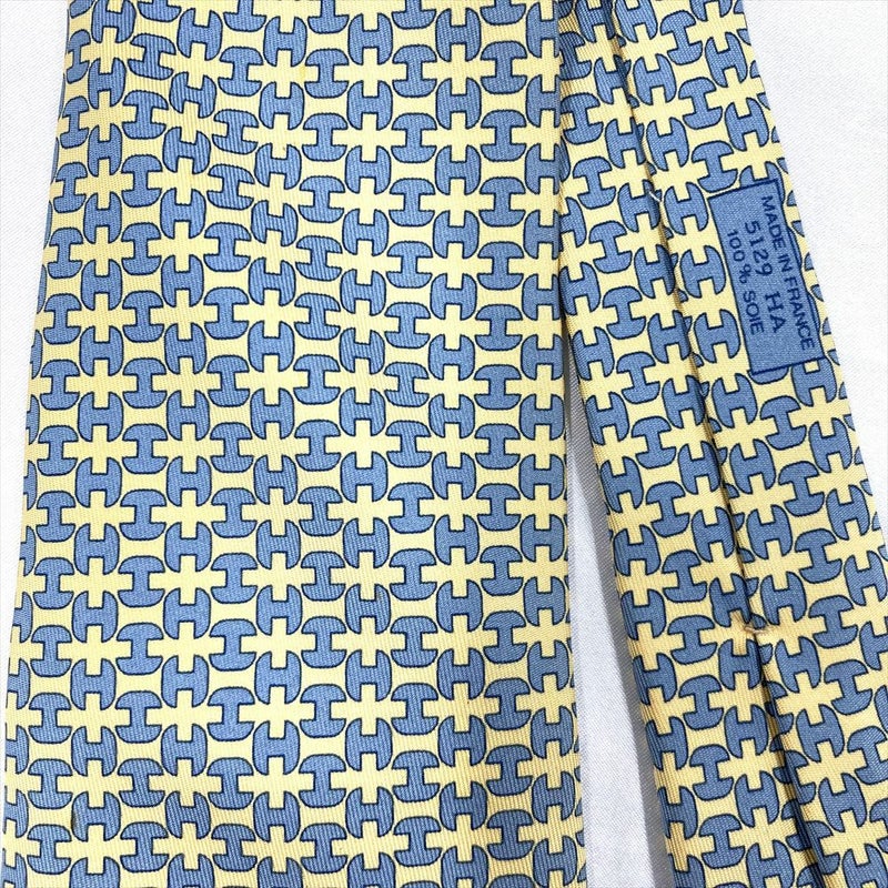 3. エルメス HERMES Hモチーフ ネクタイ シルク 169cm イエロー 総柄 メンズ【中古】