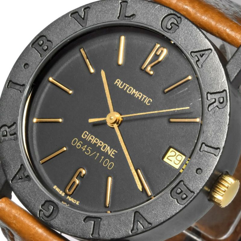 - ブルガリ BVLGARI ブルガリブルガリ GIAPPONE デイト メンズ 自動巻き 時計 黒文字盤 裏スケ カーボン レザー BB33VLD 日本限定1100本【中古】