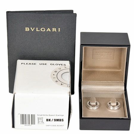 送料無料 新品仕上げ済 ブルガリ BVLGARI ビーゼロワン ハーフ サークル パヴェ ダイヤモンド フープ イヤリング K18WG ピアス【中古】