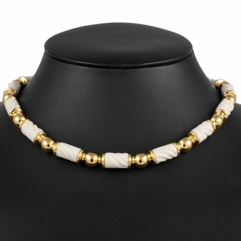 3. ブルガリ BVLGARI チャンドラ ネックレス K18YG ホワイトセラミック【中古】