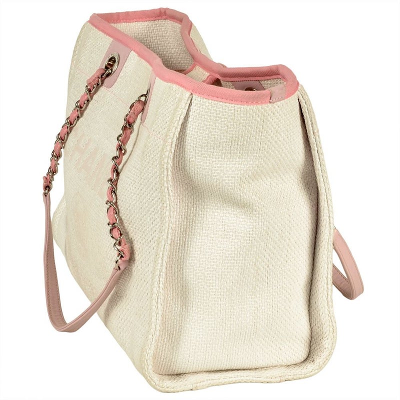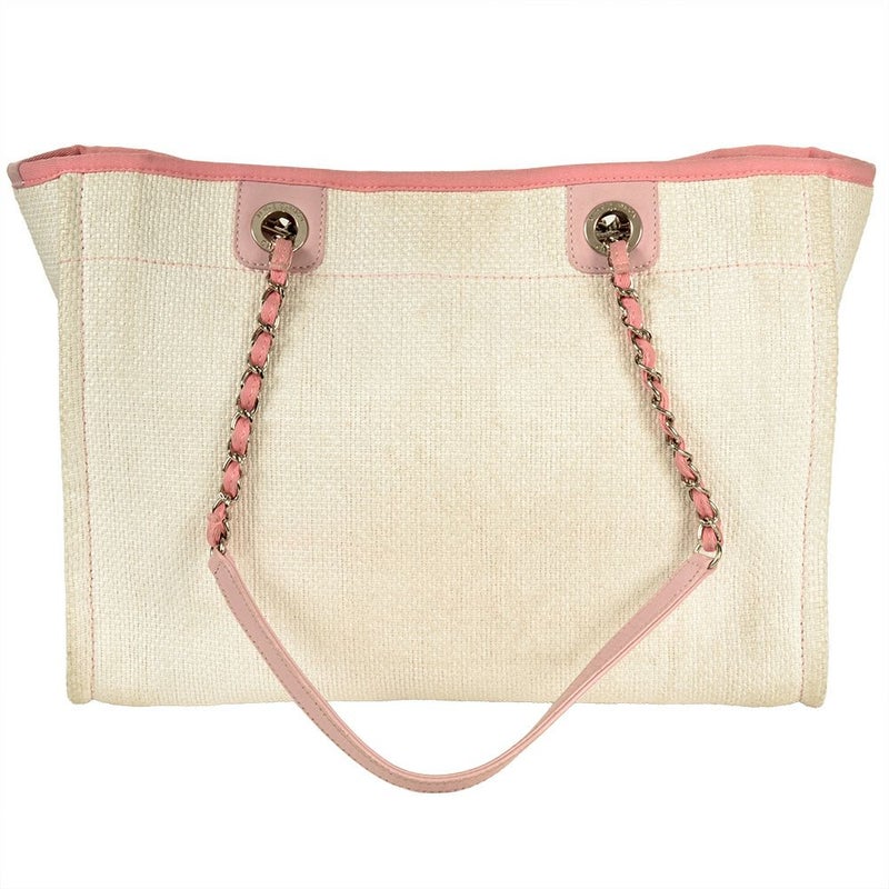 シャネル CHANEL ドーヴィルMM チェーン トートバッグ ストロー 21773066 ピンク 8桁21番台 ココマーク【中古】
