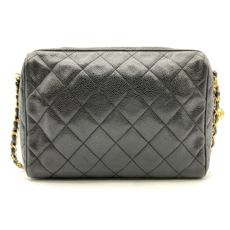 5. シャネル CHANEL ココマーク マトラッセ チェーン ショルダーバッグ キャビアスキン ブラック 7桁 3番台【中古】