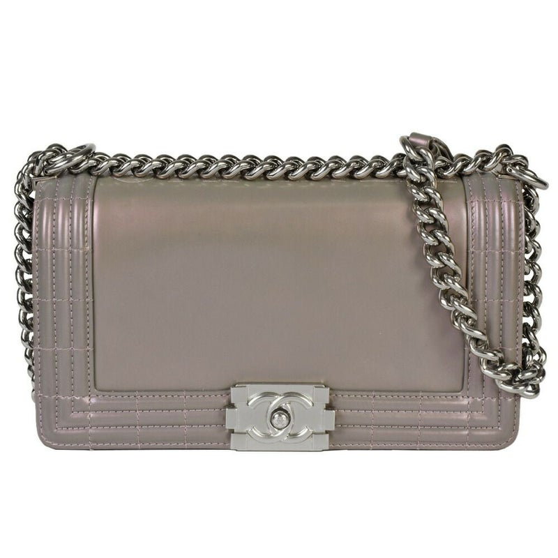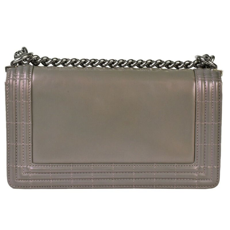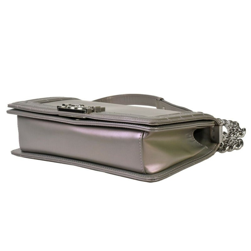 3. シャネル CHANEL ボーイシャネル ココマーク チェーン ショルダーバッグ レザー A67086 メタリックグレー シルバー金具【中古】