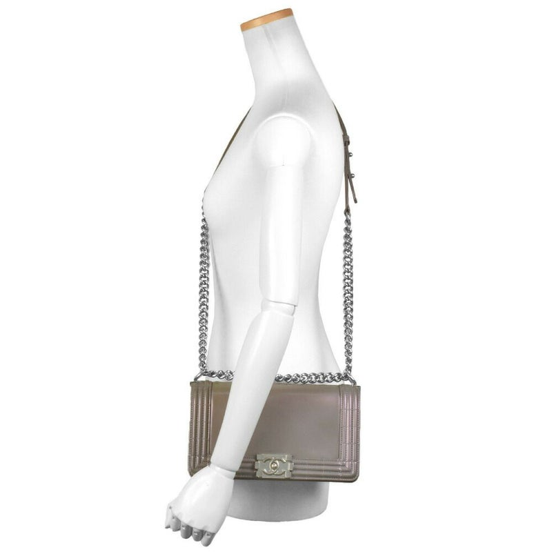 4. シャネル CHANEL ボーイシャネル ココマーク チェーン ショルダーバッグ レザー A67086 メタリックグレー シルバー金具【中古】