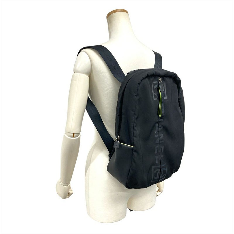 シャネル CHANEL ココマーク スポーツライン ロゴ ジップアップ リュック ナイロン ブラック シルバー×ブラック金具 バックパック 7桁9番台【中古】