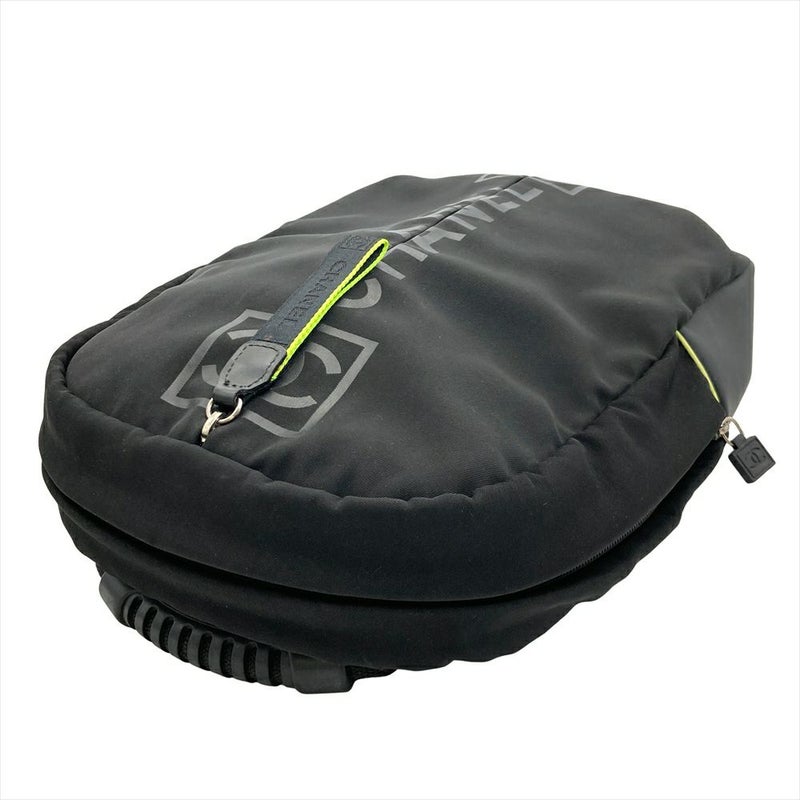 4. シャネル CHANEL ココマーク スポーツライン ロゴ ジップアップ リュック ナイロン ブラック シルバー×ブラック金具 バックパック 7桁9番台【中古】