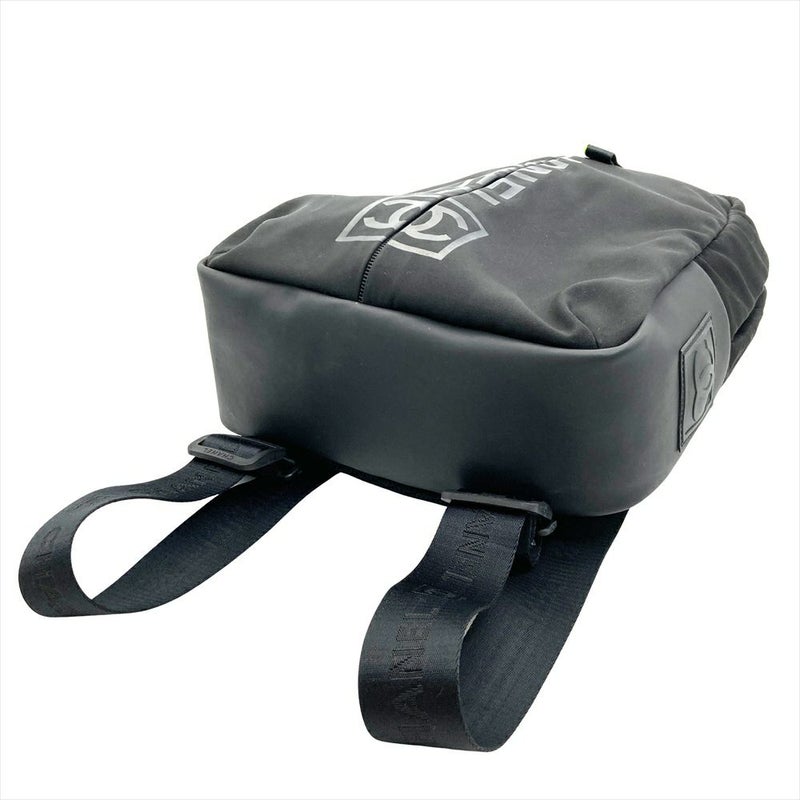 5. シャネル CHANEL ココマーク スポーツライン ロゴ ジップアップ リュック ナイロン ブラック シルバー×ブラック金具 バックパック 7桁9番台【中古】