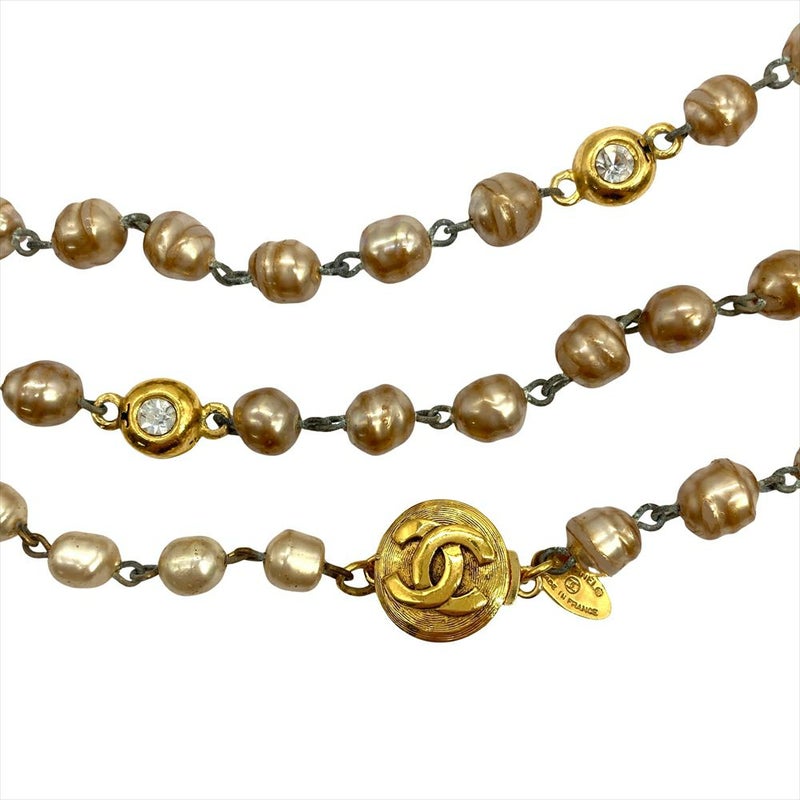 5. シャネル CHANEL ヴィンテージ ロング ネックレス メタル フェイクパール ラインストーン 184cm ゴールド金具 バロック レディース【中古】