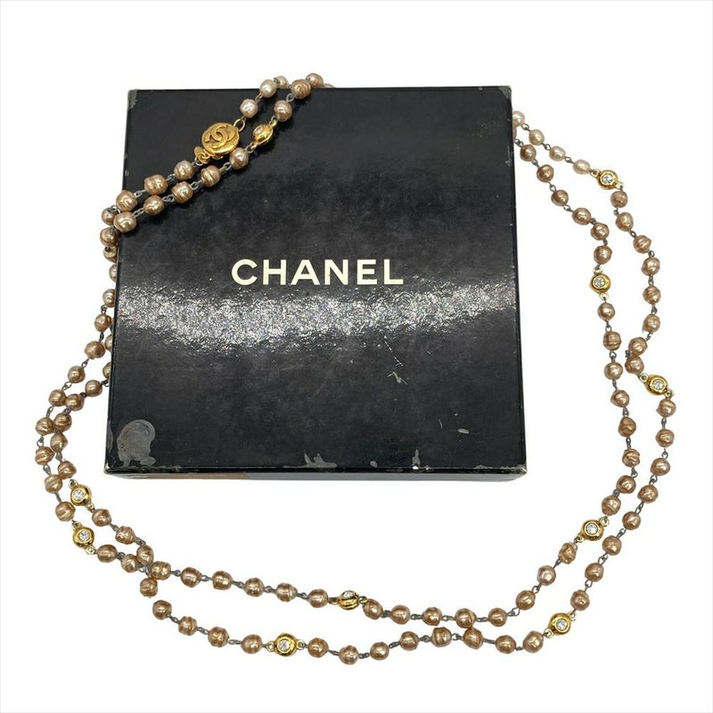 シャネル CHANEL ヴィンテージ ロング ネックレス メタル フェイクパール ラインストーン 184cm ゴールド金具 バロック レディース【中古】