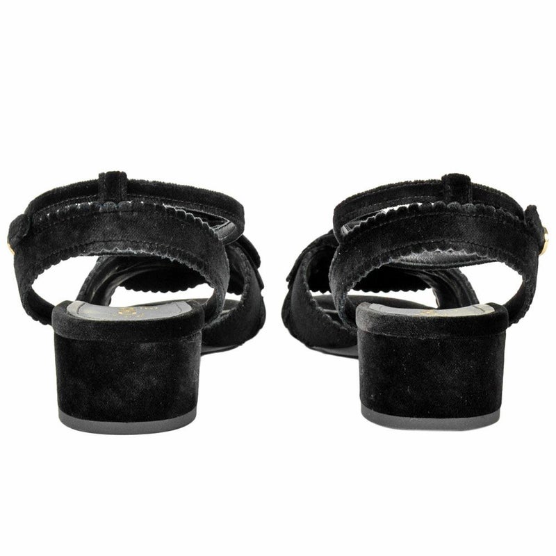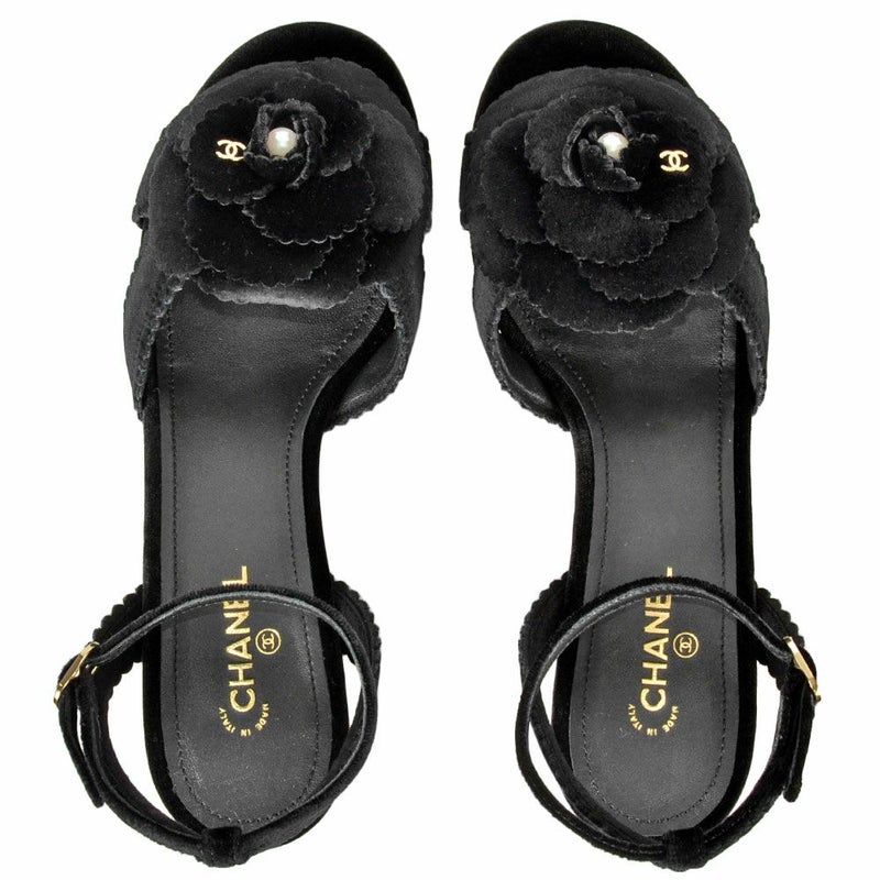 シャネル CHANEL カメリア ポインテッドトゥ サンダル ベルベット ブラック 36Cサイズ 約23cm ほぼ未使用 レディース【中古】