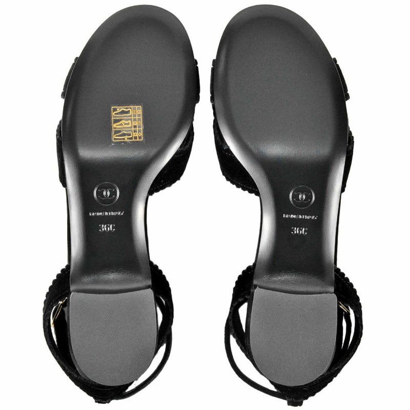 4. シャネル CHANEL カメリア ポインテッドトゥ サンダル ベルベット ブラック 36Cサイズ 約23cm ほぼ未使用 レディース【中古】