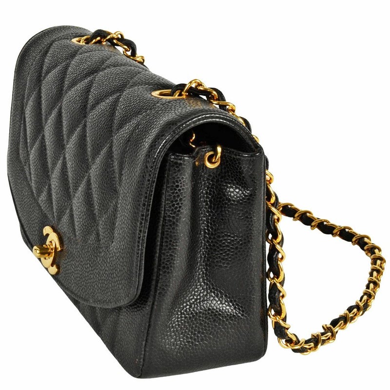 3. シャネル CHANEL ダイアナ 22 シングルフラップ チェーン ショルダーバッグ キャビアスキン A01164 ブラック ゴールド金具 ココマーク マトラッセ【中古】