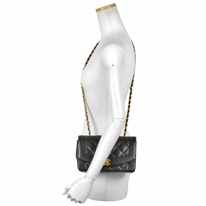 5. シャネル CHANEL ダイアナ 22 シングルフラップ チェーン ショルダーバッグ キャビアスキン A01164 ブラック ゴールド金具 ココマーク マトラッセ【中古】