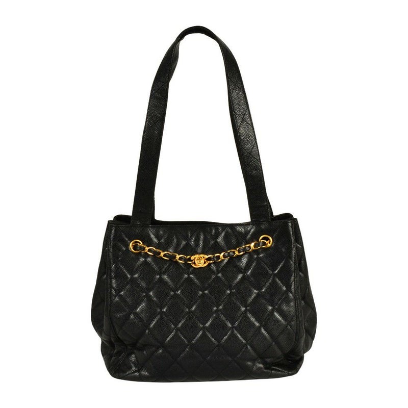 5. シャネル CHANEL ショルダーバッグ キャビアスキン ブラック ゴールド金具 ターンロック チェーン レディース【中古】