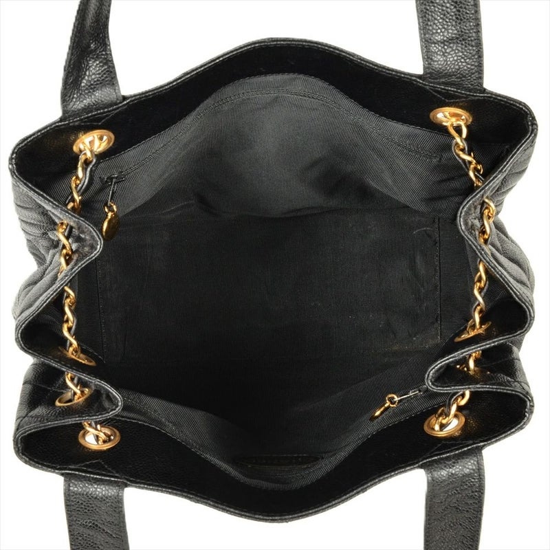 4. シャネル CHANEL ショルダーバッグ キャビアスキン ブラック ゴールド金具 ターンロック チェーン レディース【中古】