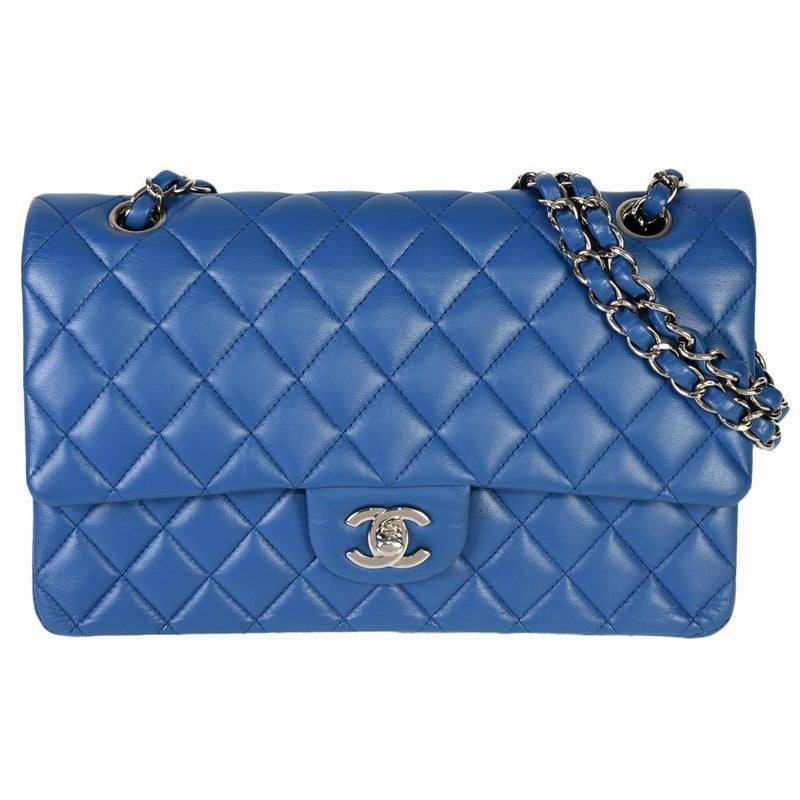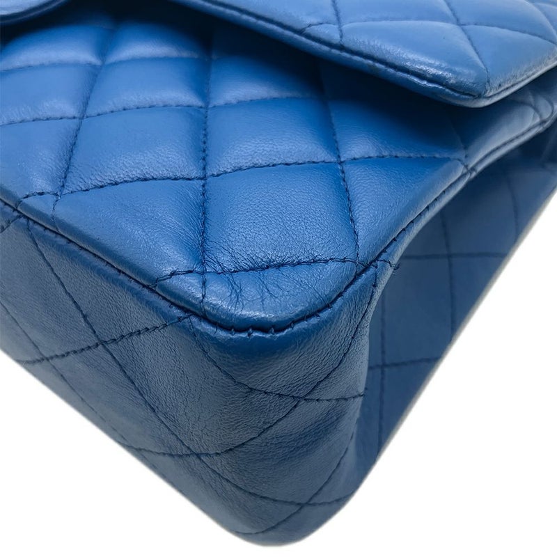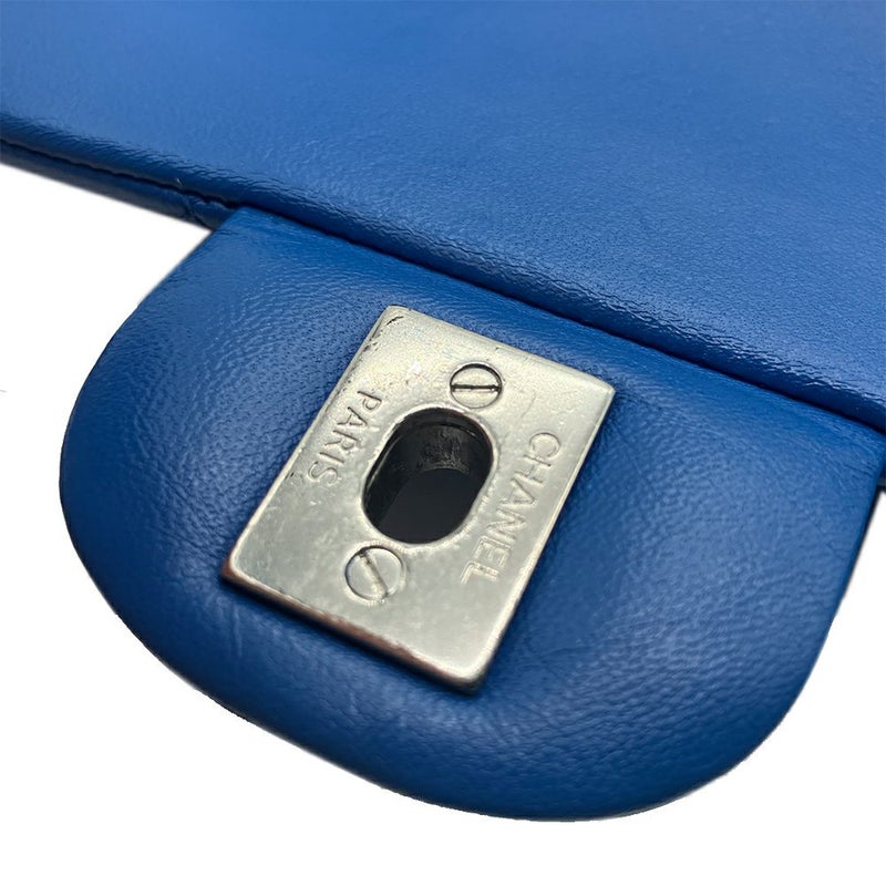 3. シャネル CHANEL マトラッセ25 Wフラップ Wチェーン ショルダーバッグ ラムスキン A01112 ブルー シルバー金具 レディース【中古】